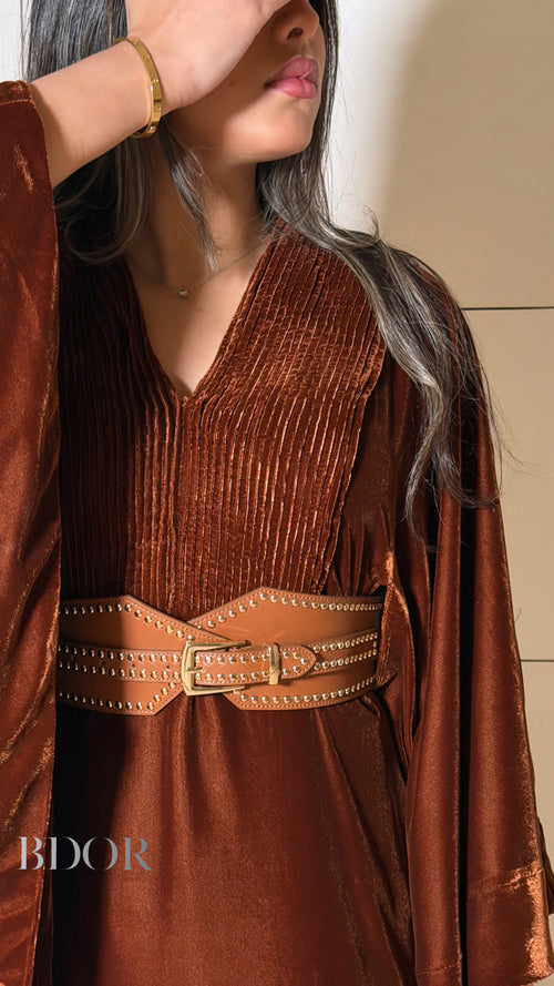 Brown Silk Velvet Pants & Embroidered Bisht Set